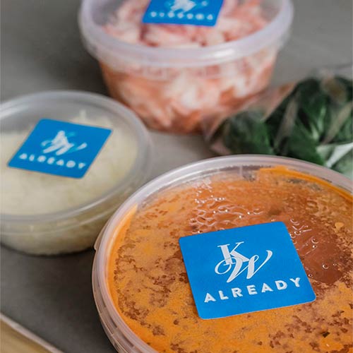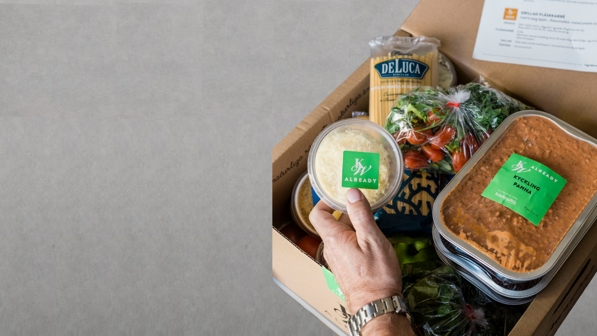 Kitchenwiz köper in, lagar och förbereder middagarna precis som på restaurang. Våra professionella kockar lagar all mat från grunden Allt är förberett så långt det bara går.. I Already-lådan bifogar vi en tydlig färgkodad beskrivning för att du snabbt laga maten med minimalt arbete – ”aktiv” tid ca en kvart. Vår Already-låda innehåller tre rätter, en med fisk, en med fågel och en med kött. Vill du byta ut rött kött/fläsk mot vegetariskt alternativ går det bra