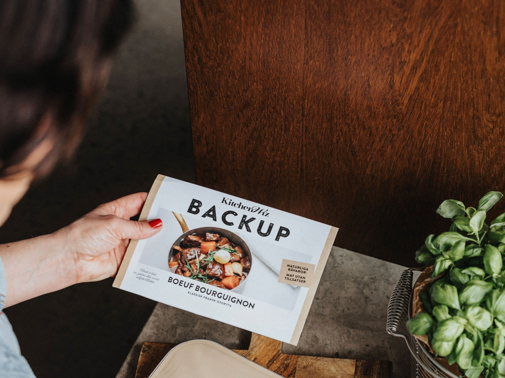 Namnet Backup syftar på att ha bra mat hemma, redo när tiden inte räcker till, i stället för hämtmat.